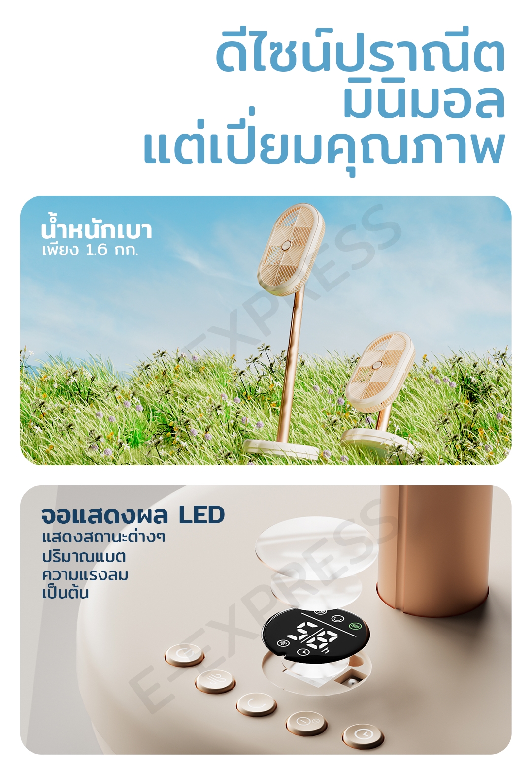 ✅ มาพร้อมจอ LED บอกสถานะต่างๆ ของพัดลม เช่น แบตเตอรี่หรือความแรงลม เป็นต้น