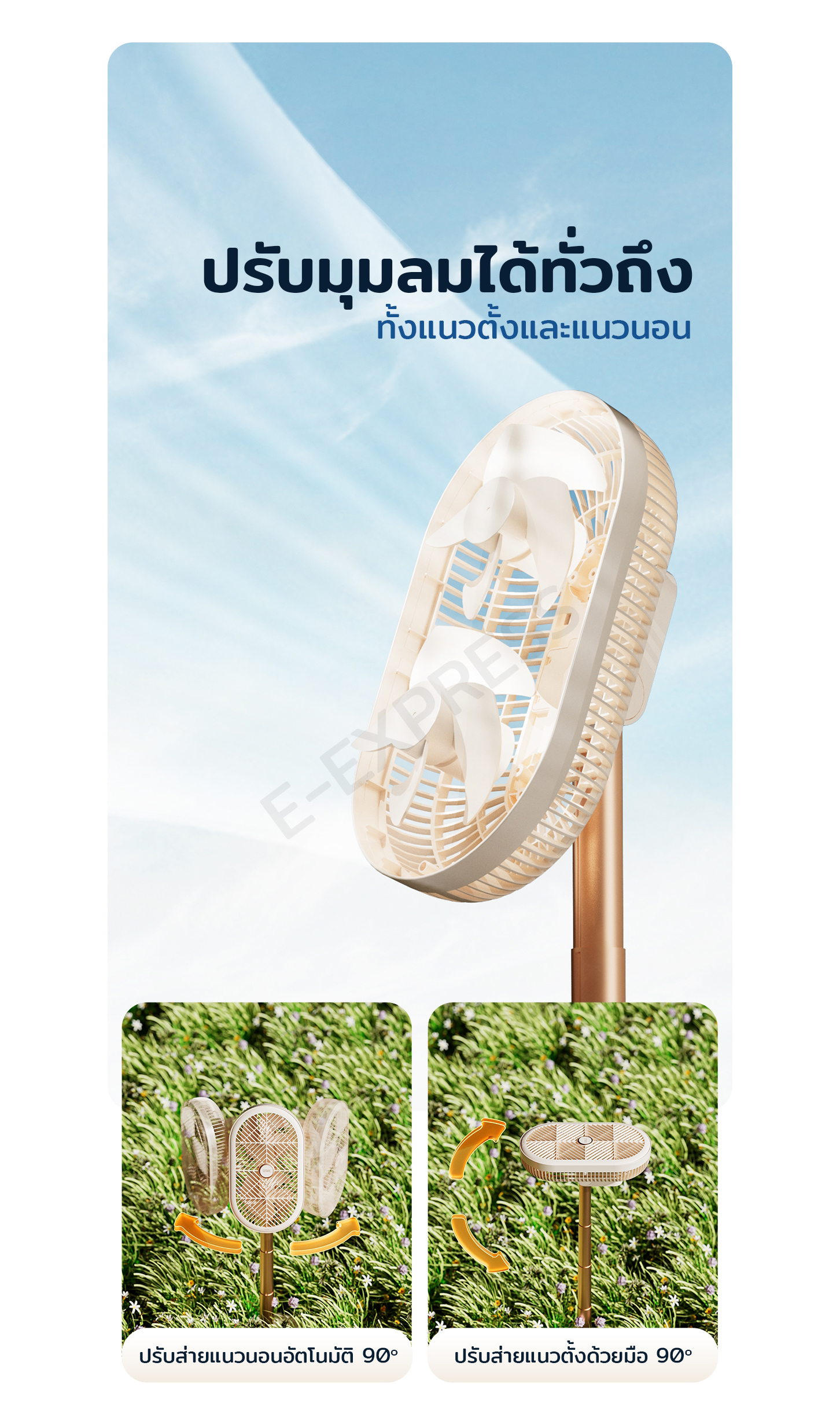 ✅ สามารถปรับองศาได้ทั้งแนวตั้ง (90องศา) และแนวนอน (90องศา) (ส่ายอัตโนมัติเฉพาะแนวนอน)